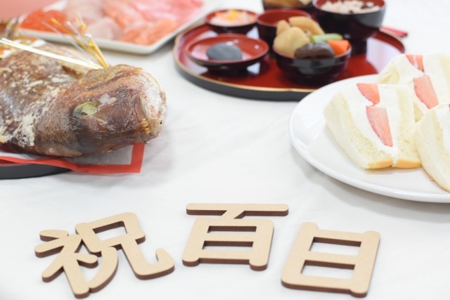 生後100日に、一生食べ物に困らないようにする儀式ですが、